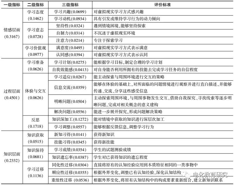 二、基于沉浸式虚拟现实系统的学习评价指标要素的确定