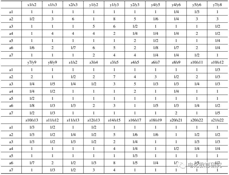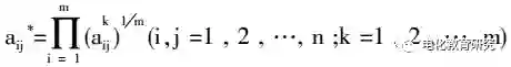 假设评价权重的专家共有m位,每位专家对指标权重所打的标度值a之间存在区别。对于每两项指标的对比中,客观上应该存在一个最优标度值aij*。采用几何平均法计算出第k个专家的最优标度值aij*,采用如下公式: