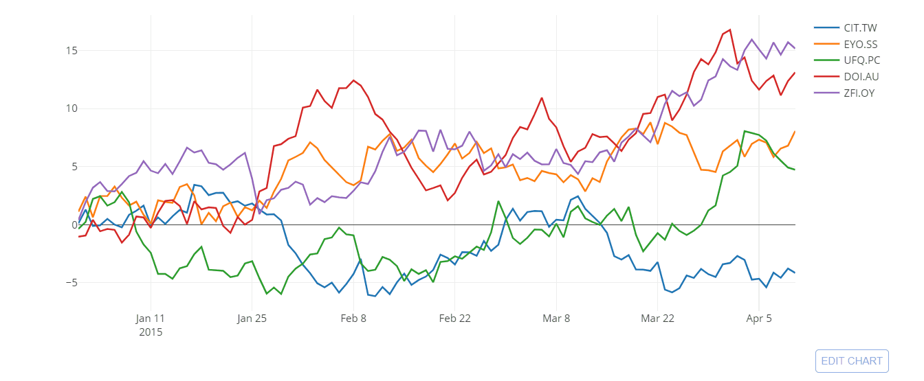 Cufflinks将Plotly直接绑定到pandas数据帧。这种组合非常惊人,结合了Pandas的灵活性,比Plotly更有效,语法甚至比plotly简单。使用plotly的Python库,您可以使用DataFrame的系列和索引来描述图形,但是使用Cufflinks可以直接绘制它。正如下面这个例子: