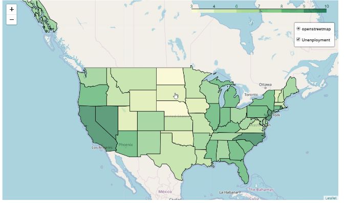 让我们用美国失业的Geojson生成一个Choropleth地图。以下是片段:
