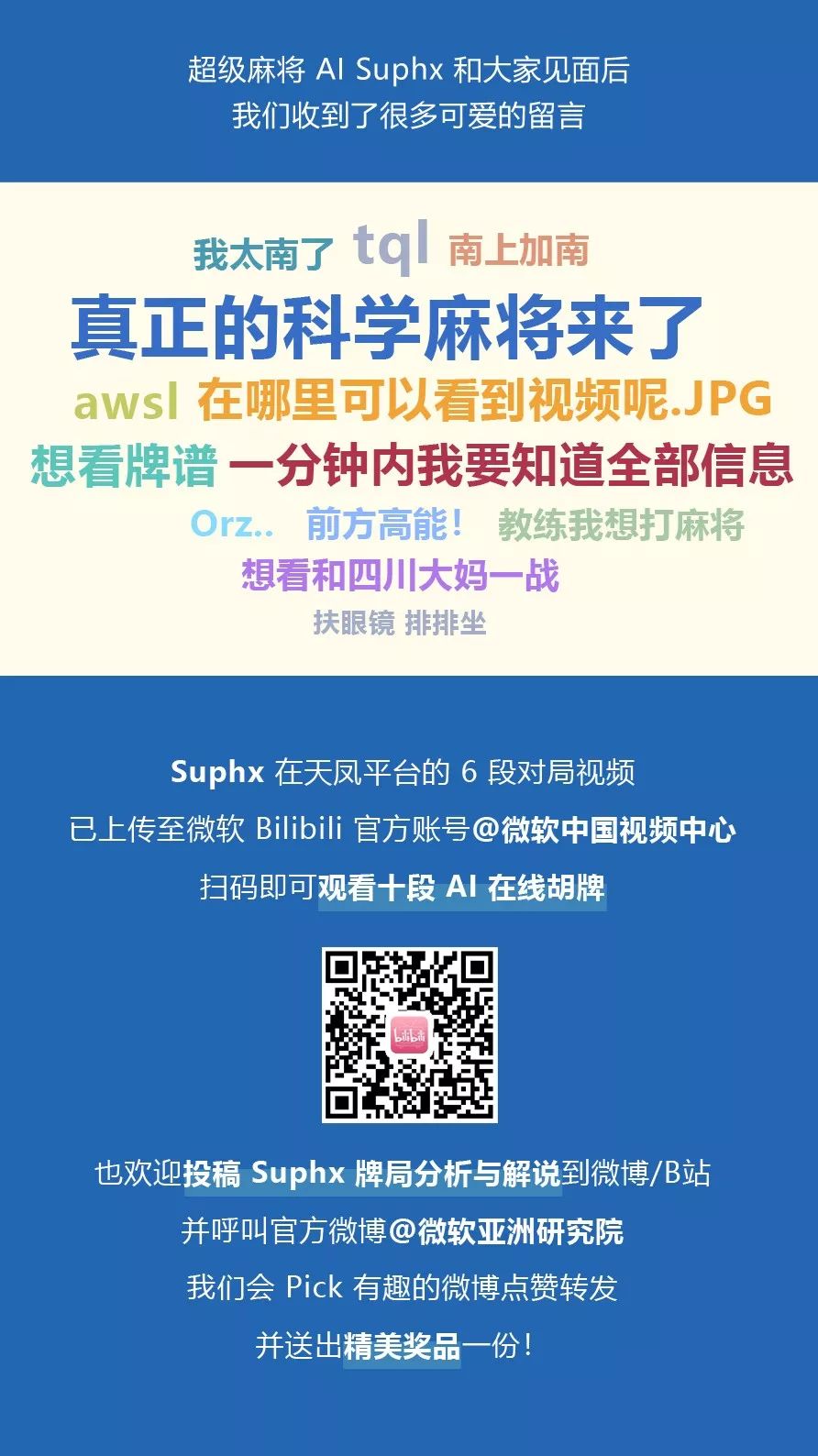 更多Suphx对局视频,请访问微软Bilibili官方账号“微软中国视频中心”