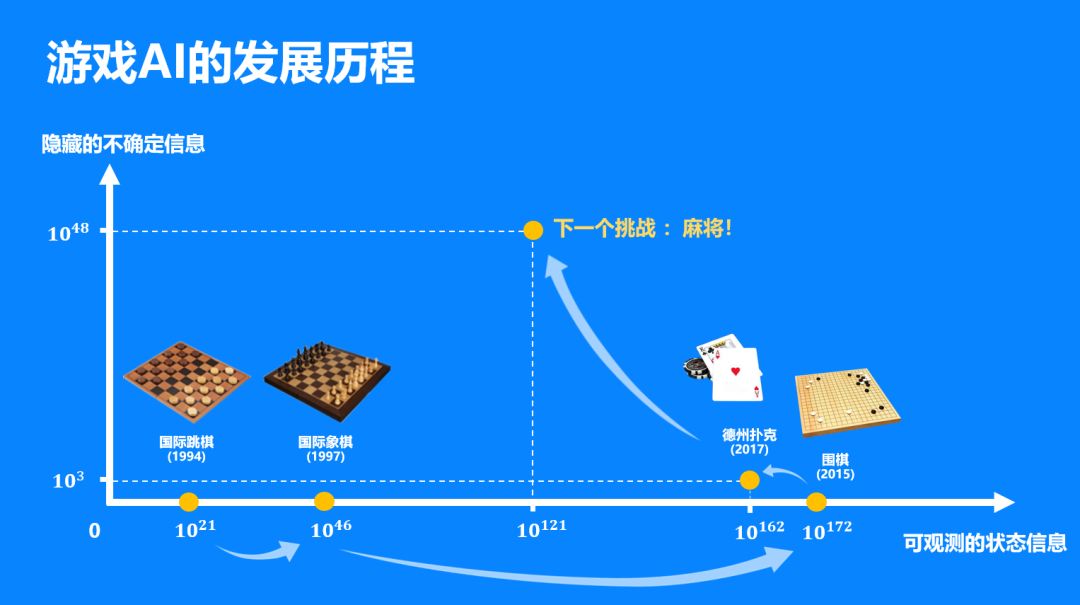 从难度上来说,相比信息完整、逻辑性强的象棋、围棋等其他棋类,参与麻将的玩家信息是不对称的,麻将属于非完美信息游戏(imperfect information game),致使麻将在打牌的过程中存在大量隐藏信息,具有高度的不确定性。在这种挑战下,仅靠算力无法根本解决问题,需要更强的直觉、预测、推理、和模糊决策能力。