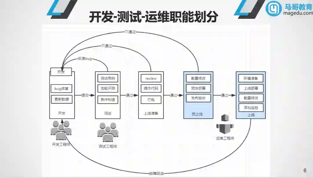 开发需要开发好代码——> 交给测试工程师测试——>测试完成后,提交给运维工程师进行上线,运维工程师,需要把开发写好的代码,发布出去,给用户提供服务。