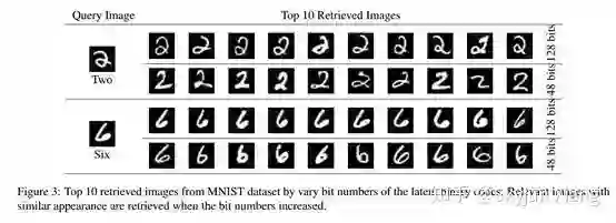 我们进一步分析h = 48和h = 128的学习散列码的质量,如图3所示。可以看出,这两个设置都可以学习用于图像检索的信息二进制码。