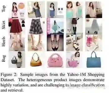 Yahoo-1M数据集共包含1,124,087个购物产品图片,分为116个服装专用课程。 通过从雅虎购物网站上抓取图像来收集数据集。 所有图像都标有类别,例如Top,Dress,Skirt等。 图2显示了数据集的一些示例。