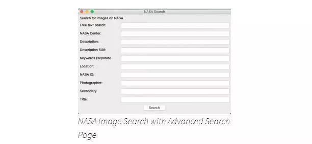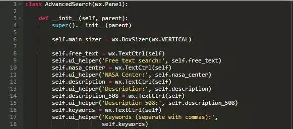 advanced_search模块作为wx.Panel,包含对NASA API进行高级搜素所需的全部部件。如果您阅读他们的文档,您会发现大约有十几个过滤器可以用于搜索。