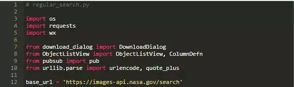 这里导入了version_1中的nasa_search_ui.py的全部模块,同时还需要使用base_url向NASA的图像API发送请求。唯一新导入的是pubsub。