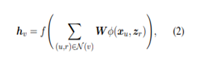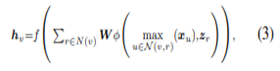 其中,N(v)表示实体v的一跳邻居(的关系和尾实体pair),f是个非线性激活函数ReLU,x与z分别表示实体和关系的初始特征向量。