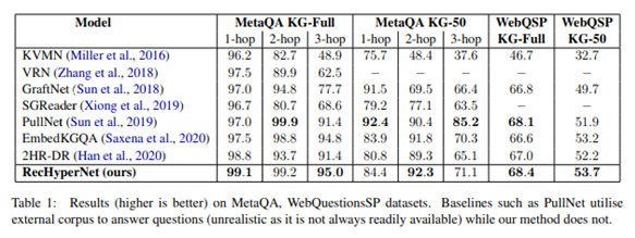 本文提出了一种基于递归超图的知识图谱问答方法RecHyperNet,作者认为人回答问题时倾向于在推理过程中递归地对获取的不同知识(object)随时进行归类(grouping),而超图(hypergraph)则可以作为一个关系归类建模的工具。在现有的问答方法里,对于给定知识库的递归关系归类并没有被明确的作为问答过程的一环,因此为了验证这种贴近于人类思维的方式是否能够为自动问答带来收益,作者提出了上述方法(Recursive Hypergraph Network),并在MateQA和WebQuestionSP的两个数据集上验证了该方法的有效性。