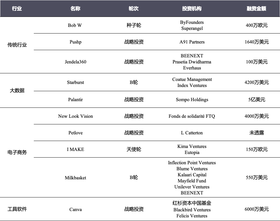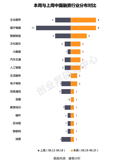 相比于上周,医疗健康、企业服务、智能制造热度不减;信息通信本周仅有1起,相比上周有所减少。