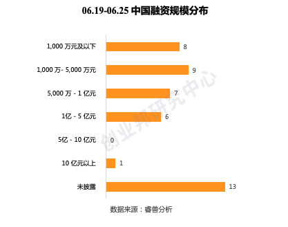 本周融资事件的融资规模在1,000万-5,000万元的数量最多,有9起。