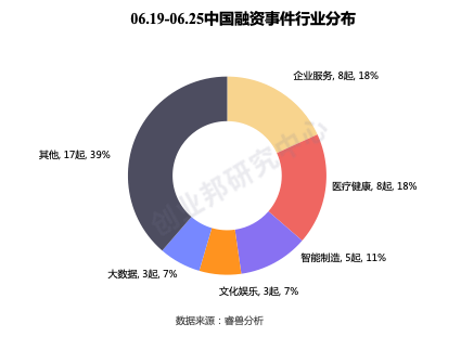 行业领域,其中企业服务、医疗健康并列8起,智能制造5起,文化娱乐、大数据、汽车交通、人工智能并列3起。