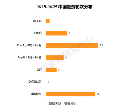 前期(种子轮、天使轮、A轮),共22起,其中A轮有15起;中后期(B轮、C轮、D轮及以后)共8起