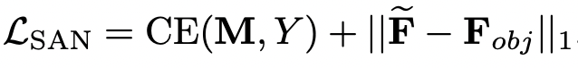 其中CE应该就是图4中的L_seg,而第二项的作用在于使得SAN的归一化结果在没有真值标签的情况下逼近F_obj.