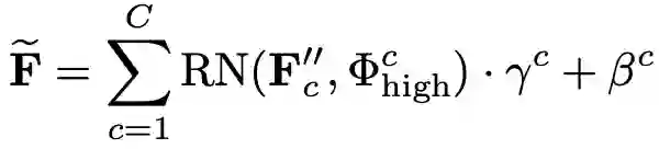 其中,表示编码器提取的特征图 F_n,k 上对应真值标签 Y 中第 c 个类别所属的空间位置的特征值集合。γ 和 β 分别表示实例归一化重点缩放和平移变量,它们是可学习的,每一个不同的类别都有不同的 γ 和 β。