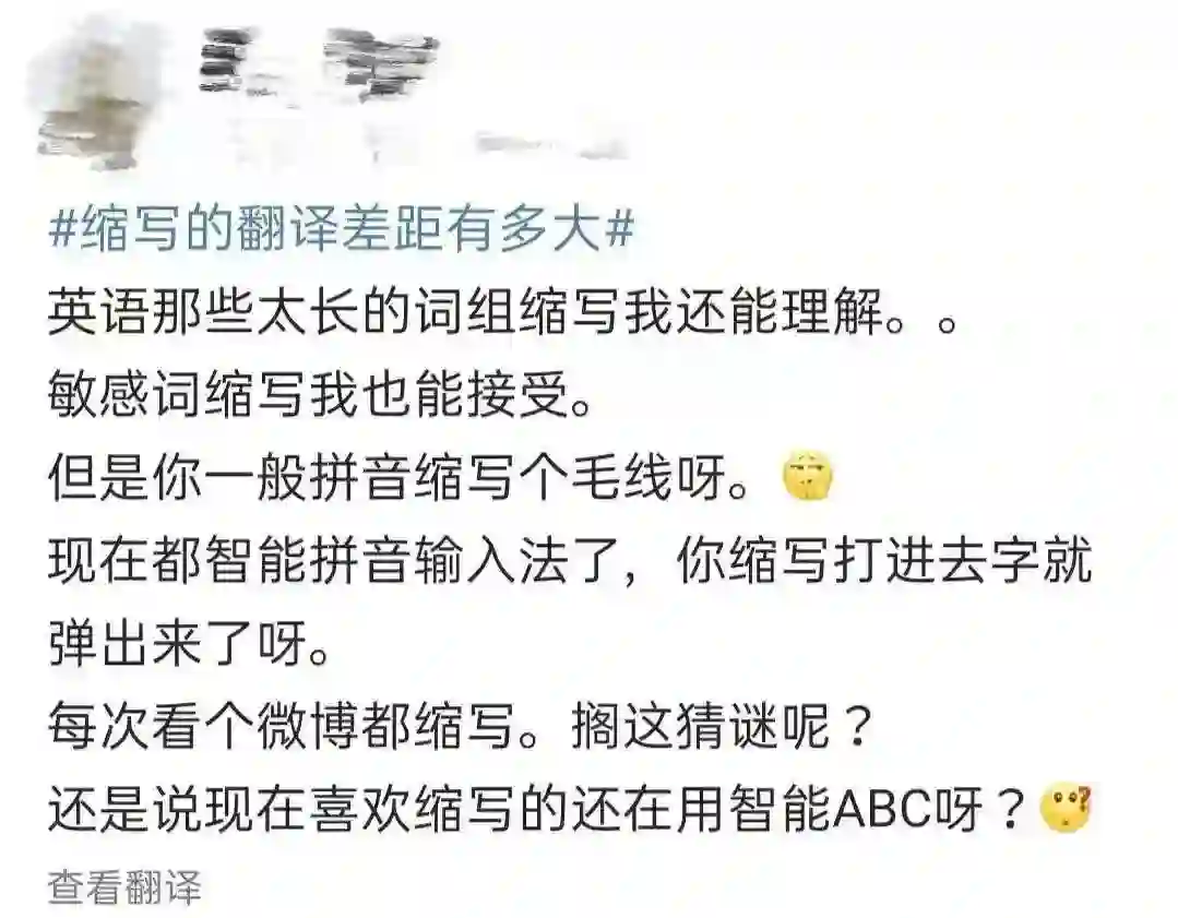 不明就里的旁观群众感到疑惑,不明白为什么会用到这些词,又为什么连这些词也要缩写。