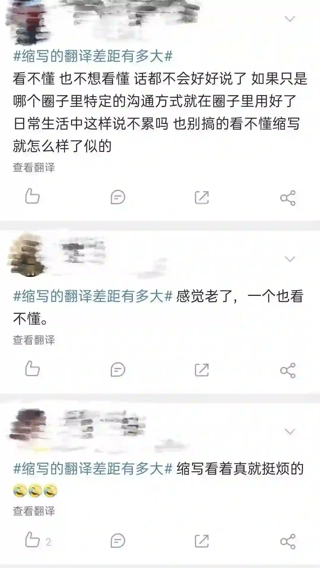 这是文化自身发展与变迁所不可避免的问题。也许我们能做的只是多一些认识,多一些理解,再多一些自省。例如漫天的缩写其实大可不必,在公共讨论的范围之内尽量好好表达;例如看缩写的时候少一点戾气,在评论里友好询问或者善用搜索。