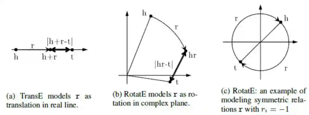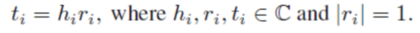 2. 利用复数空间,将实体表示为负向量,关系表示为复向量空间中的“旋转”,并且证明了“旋转”可以完全匹配三种关系模式;