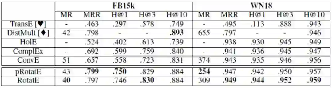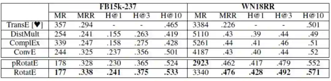 另外:在 FB15k-237 和 WN18RR 上 pRotatE 比 RotatE 的结果差距更明显,这也表明了模数对建模和推导“组合”关系更加重要。