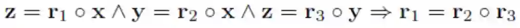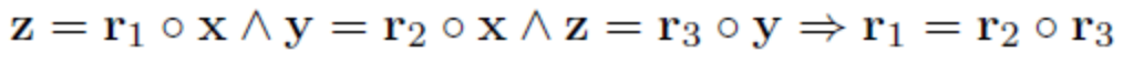 3. 关系 r1 是关系 r2 和 r3 的组合:if∀x,y,z : r2(x,y)ʌr3(y,z) ⇒r1(x,z)。