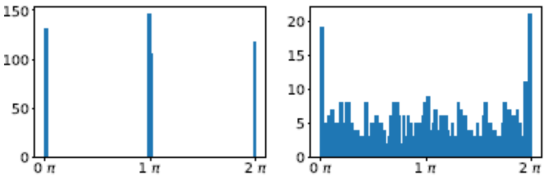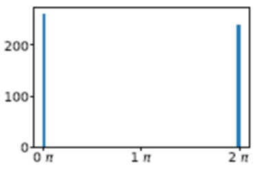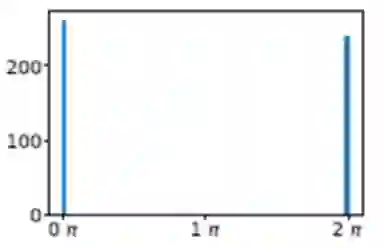 对称:该模式下要求关系具有性质:r°r=1,则结果为 ri=±1,在 WN18 上训练 500 维的 RotatE,下图给出了关系 similar_to 的嵌入相位直方图,可以发现嵌入相位是 π,0,2π,这也表明了 RotatE 模型可以很好的推导对称模式;可以用 hypernym(上位词-反对称)作为一个补充反例。