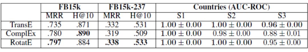 为了进一步证明 RotatE 的有效性,进一步设置实验:使用具有自我对抗负采样技术的 TransE 和 ComplEx 与 RotatE 模型在相同的设置下进行对比: