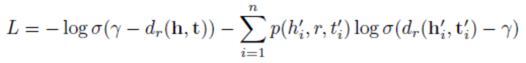 这种负采样损失使用统一的方式对待所有三元组,这种模式会出现问题,因为在训练的过程中,许多样例明显是假的,不能提供任何有意义的信息,因此对负采样方法进行改进,提出“自我对抗负采样”,根据当前的嵌入模型采样负例。具体来说,遵循以下分布采样负三元组: