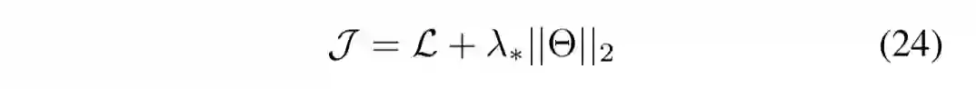 其中 n 是训练集实例的总数。y(i)=1 表示正实例(用户已与该 item 交互),y(i)=0 表示负实例。优化过程是将损失函数和正则化项最小化: