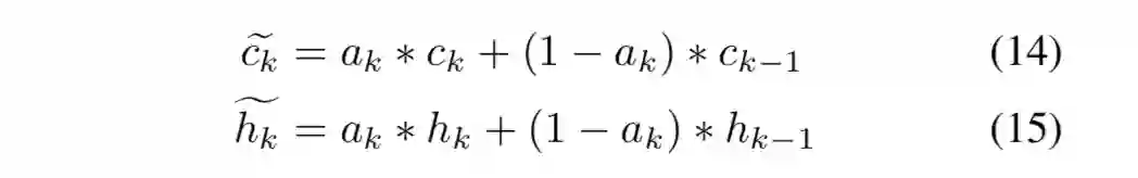 其中 e(p) 表示要进行预测的 item 的另一个嵌入向量,我们称之为预测嵌入,与输入嵌入向量 x(p) 不同。注意力得分 a(k) 根据目标 item 决定哪些 item 应该被重点关注或忽略。我们利用这些分数来调整 cell 和隐藏状态: