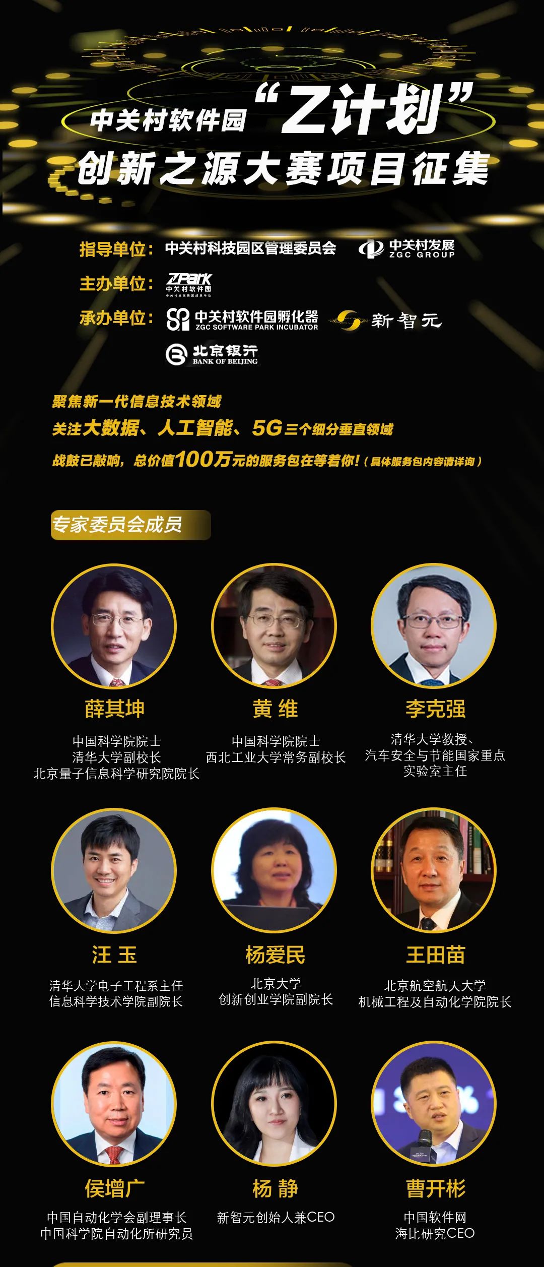 「Z计划」的专家、导师阵容相当豪华,中科院院士薛其坤、清华大学教授李克强、北京航空航天大学教授王田苗、新智元CEO杨静等学界业界「大牛」担任专家委员会成员,千方科技董事长夏曙东、搜狗CEO王晓川、科大讯飞联合创始人徐景明等明星企业家将作为评审导师。