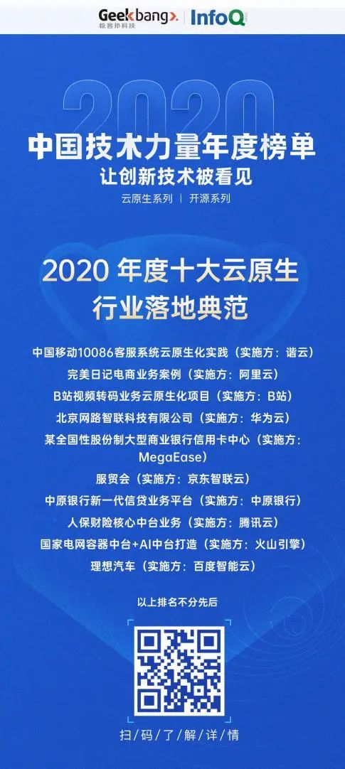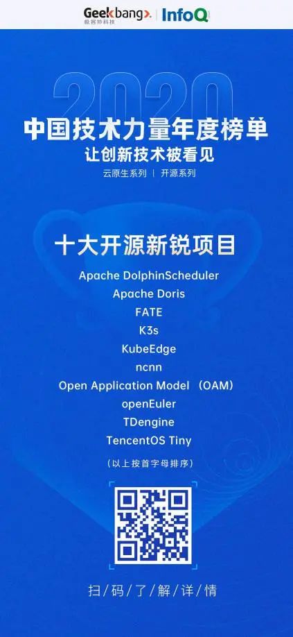 300+参评项目,100+入围项目,10000+开发者公开票选,20+专家评审,10+主编团打分,历经数月打磨,11 月 19 日,由 InfoQ 发起并组织的【2020 中国技术力量年度榜单评选】结果正式揭晓。(以下榜单内排序,均不分先后)