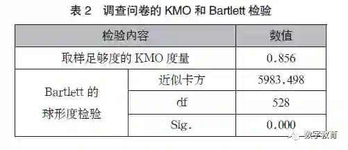 为了考查本研究样本采集的充足度是否适宜做主成分因子分析,对问卷调查的数据进行了KMO 和Bartlett 检验,数据处理结果如表2 所示。