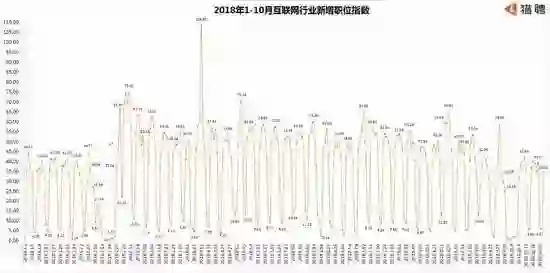 不过,今年互联网企业对人才的招聘需求确实呈现放缓的趋势,猎聘大数据“2018年1-10月互联网新增职位指数”能体现出来: