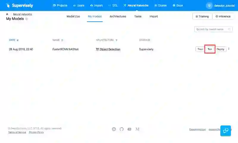 (1)转到 Model Zoo 页面(2)选择你的检测器(3)检查「My Models」列表