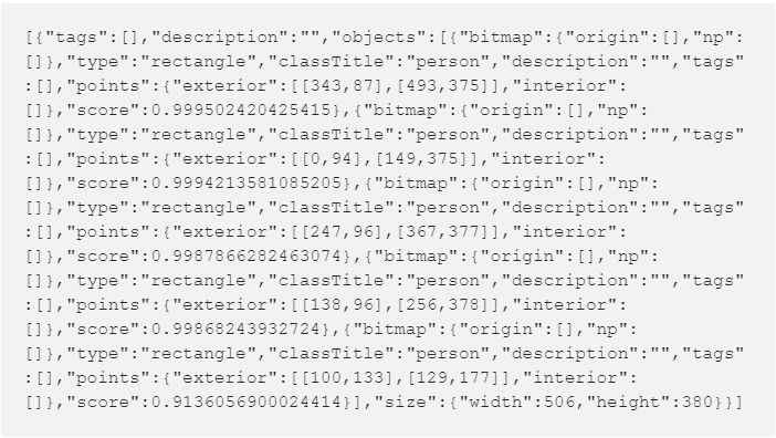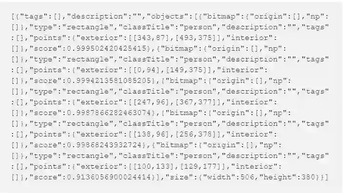 然后,Supervise.ly 会以 json 格式给你回复检测结果: