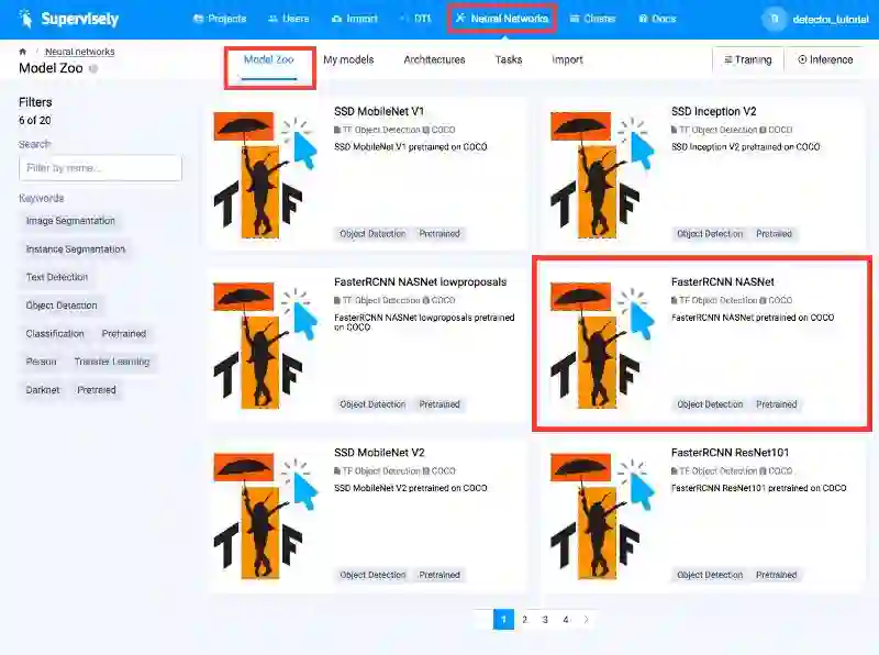 有了 Supervise.ly 平台,上面的方法都可以使用。但是,为了简单起见,我们主要使用第一种方法。我们将使用在 COCO 上预训练的基于 NASNet 的 Faster R-CNN 模型。