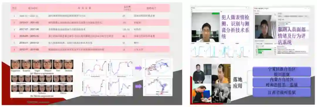 在报告的开始,贲晛烨教授首先介绍了他们团队在微表情分析领域的项目经验、数据库构建、前沿分析方法以及微表情的实际应用和落地情况。
