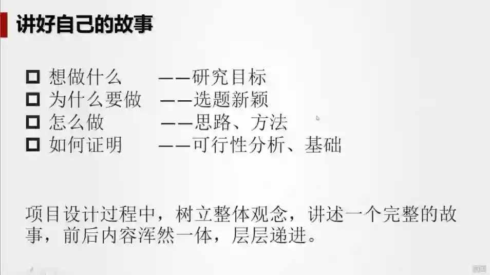然后在分享国自然申请经验的部分,贲教授首先提出要讲好自己的故事、并且要有一个新颖和合适的选题。