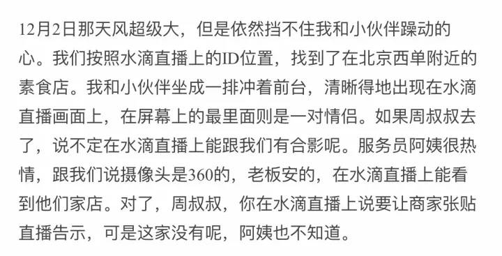 事件起因:12月12日,一篇题为《一位92年女生致周鸿祎:别再盯着我们看了》的文章称,多个360智能摄像机用户将自己在餐厅、网吧、健身馆等公共场所监控到的视频,在360旗下直播平台——水滴直播进行直播,导致其他用户个人隐私受到侵犯。