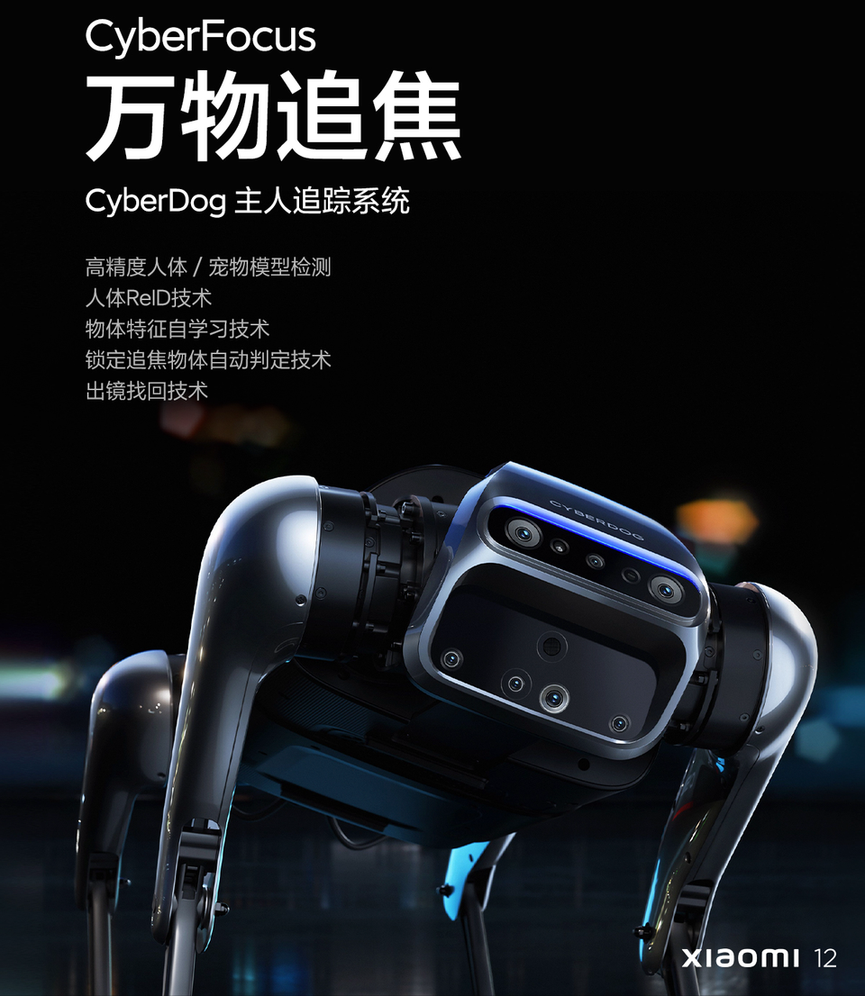 为了实现更智能化的对焦,小米 12 还加入了「CyberFocus 万物追焦」技术。雷军表示,这项技术源自小米仿生四足机器人 CyberDog 的人体视觉追踪,无论被追踪的对象如何运动,镜头都能做到焦点持续锁定。