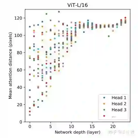 另外从ViT的分析来看,前面的layers的“感受野”(论文里是mean attention distance)虽然迥异但总体较小,后面的layers的“感受野“越来越大,这说明ViT也是学习到了和CNN相同的范式。