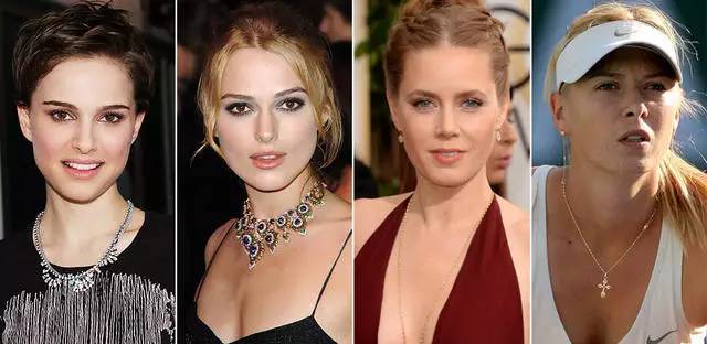 从左至右分别是:娜塔莉•波特曼、凯拉•奈特莉、艾米•亚当斯、玛丽亚•莎拉波娃……可以说是脸的过渡了 原图来源:fanbase.de,vettri.net,gorod.lv