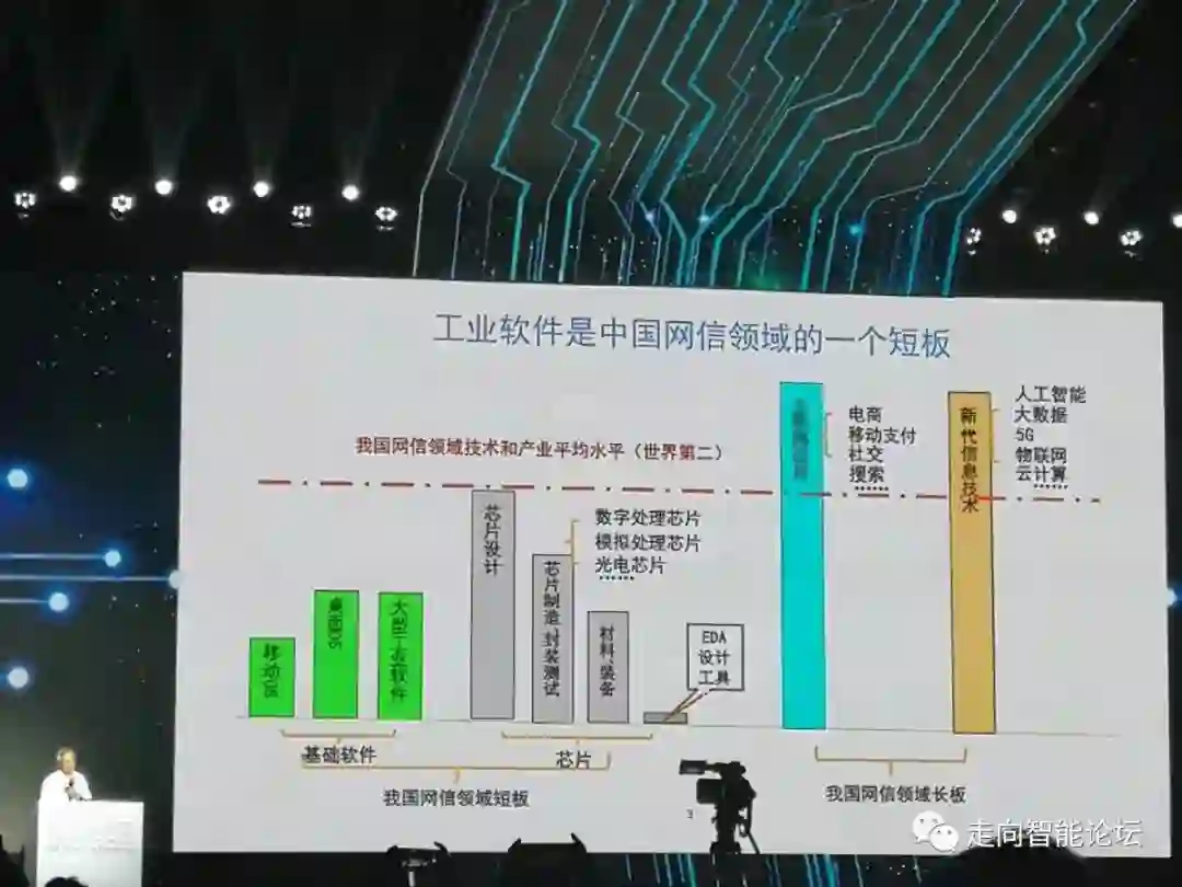 我们看到工业软件已经是一个非常重要的核心技术,也是当前我们在发展网信设计中一个短板。工业软件范围很广,我也不是这方面专家,做了一些调研,所以将其中的几块,特别是工业软件在中国整个网信领域,我们各种技术来看,整体来讲我们的水平、整体技术和产业水平就是比美国差一点。