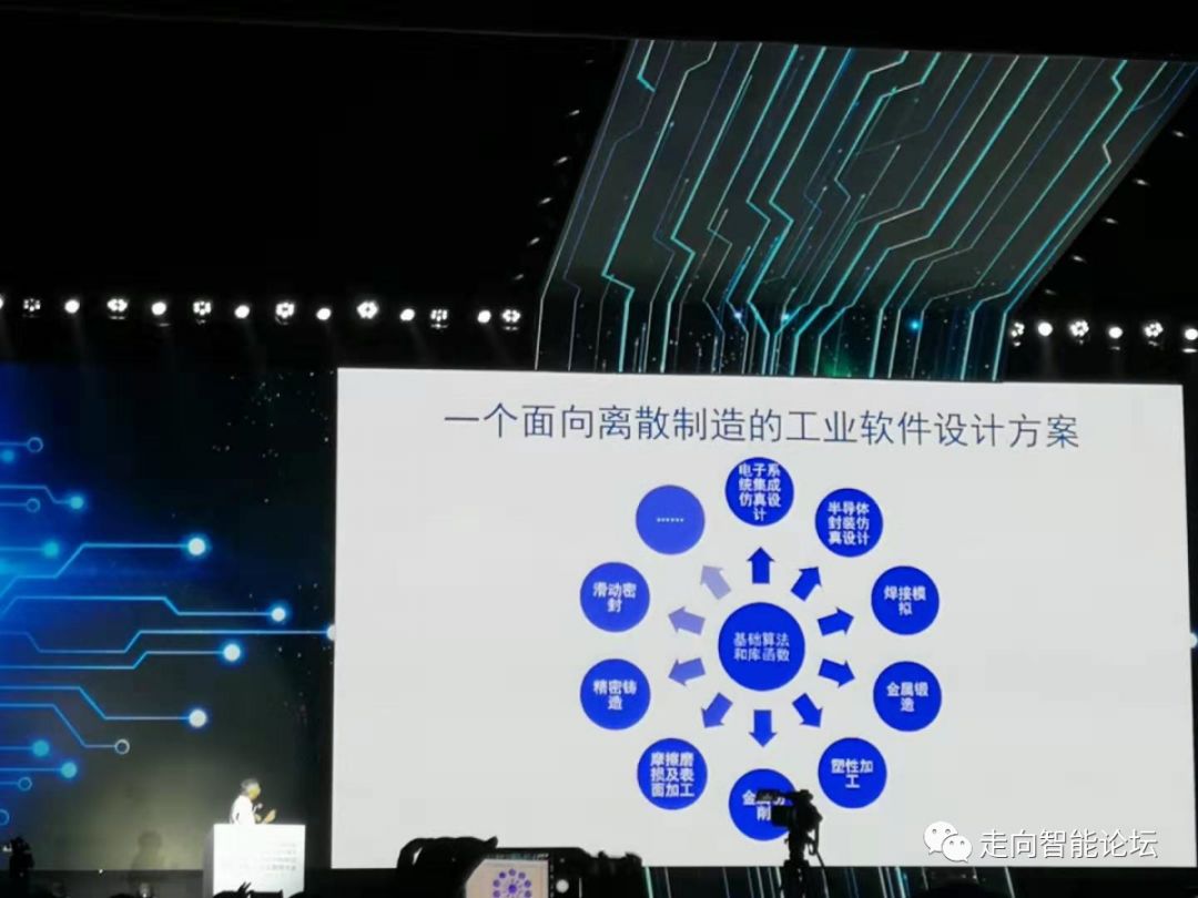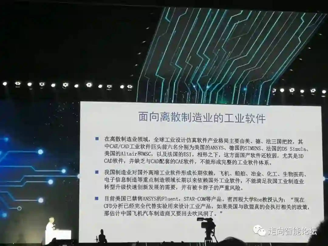 二是面向离散制造业的工业软件,工业软件很多,离散制造也是非常重要。这次制裁华为,美国的ANSYS软件,属于华为制裁的范围。如果把我们目前工业软件,国内一些公司已经可以做CAD方面的软件,CAD和CAE配套显得不够。其他还有一系列软件,我不详细讲了。这很重要的,这些工业软件制约着我们一些高档的制造,包括工业互联网的发展。比如面向离散制造业软件,我们希望支持自己的CAD、CAE,整体解决方案。这里一个构想,希望围绕一个核心的工业软件支撑各个应用领域发展,这些应用领域有很多,我想还可以不断增加,这方面希望可以尽快赶上。
