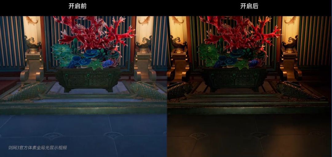 除了光线追踪技术,英伟达其实还曾经推出过一项更加亲民或者说更加实用的光线技术——体素全局光。相较于和RTX 20系列绑定的光线追踪,全局环境光还支持现有的GTX 10系列,虽然比不上光线追踪,但同样能为我们带来优异的光影效果,碍于之前能效比不高,很多游戏并没有实装,但是在这一代升级优化之后,已经有游戏跟进了,比如我们测试的剑网3。相信在以后,也会看到全局环境光越来越多的实际应用。