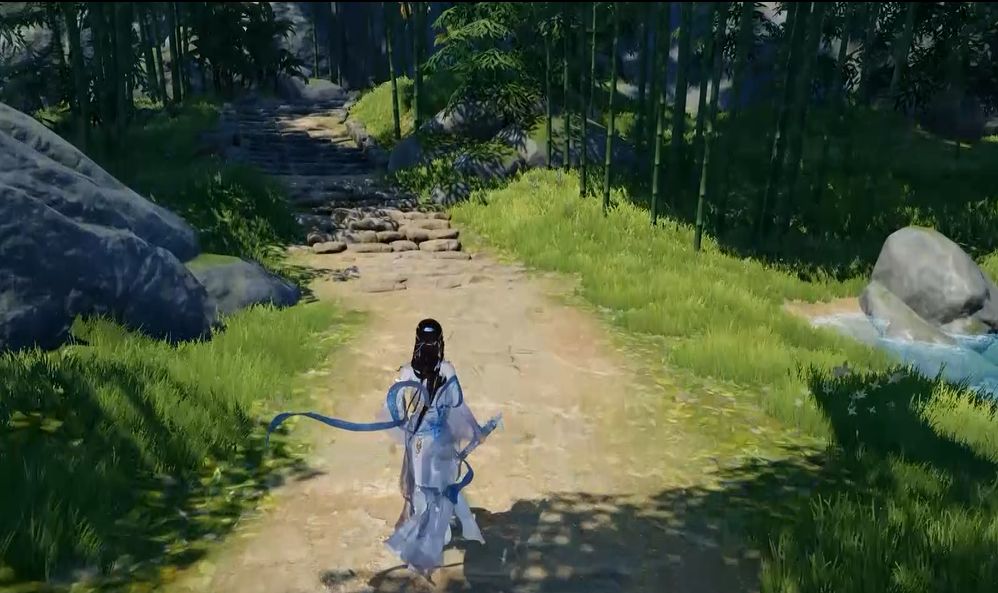 而整整开发了五年的《古剑奇谭3》有又怎样的表现呢?在细节表现上,没有达到《孤岛惊魂5》那种级别,但是整体还算不错。近距离的岩石纹理有些模糊了,和远处的纹理清晰的岩石有一个很明显的对比。但帧率稳定程度要好上不少,无论是多人战斗还是多特效的帧率都比较稳定。