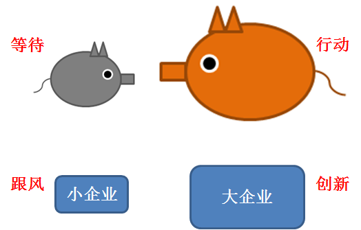 在现实世界的商业竞争当中,大企业往往勇于开拓市场,或是把资本投入到科技创新;而小企业往往喜欢坐享其成,跟在大企业后面赚一些小钱。
