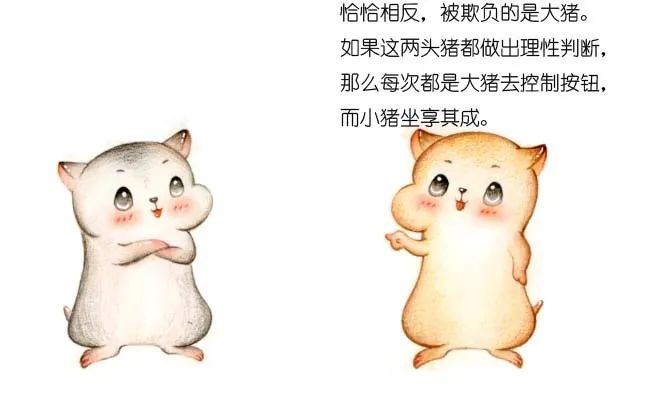 假如这两只猪都具有足够的智慧,也都希望自己尽可能少消耗、多吃猪食,那么他们会采取怎么样的行动呢?