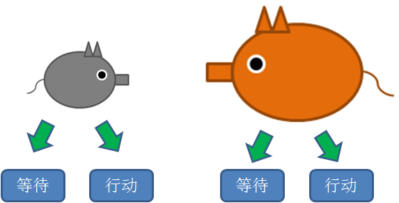 很简单,大猪可以选择等待,也可以选择行动;小猪同理,可以选择等待,也可以选择行动。