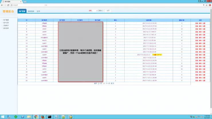 据雷锋网了解,病毒以CPA(Cost Per Action)计价方式投放, 下图是病毒后台记录着推广者的登陆帐号密码和推广完成情况。